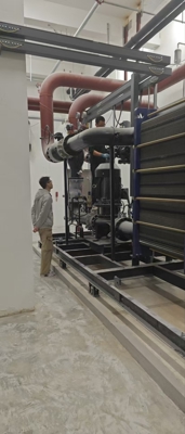 廠家技術(shù)人員調(diào)試博宇大廈換熱機(jī)組